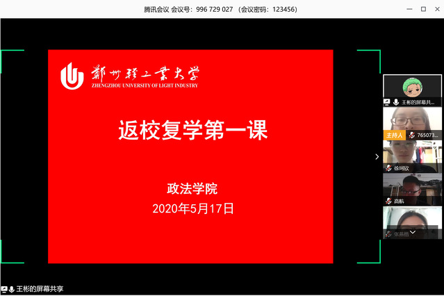 活动第一阶段,全体师生共同观看了由省教育厅统一录制的河南高校“返校复学第一课”视频;活动第二阶段,全体师生共同观看了18新利直播