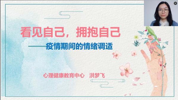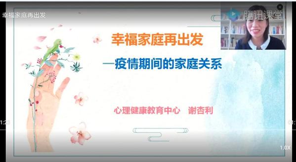 5月21日、28日,我校心理健康教育中心洪梦飞、谢杏利老师分别做了《看见自己,拥抱自己——疫情期间的情绪调适》 、《幸福家庭再出发--疫情期间的家庭关系》主题讲座。讲座通过网络直播的方式进行,近300名师生参与直播互动,数百名师生通过中心微信公众号观看录播视频。