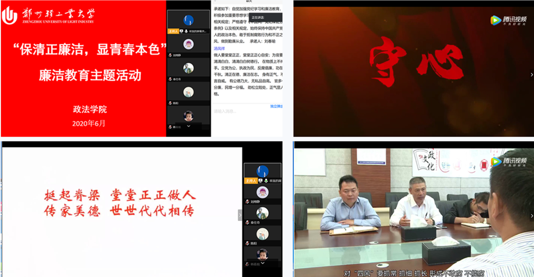 为积极培育和践行社会主义核心价值观,进一步引导毕业生廉洁修身,走好迈向社会的第一步,6月3日—7日,政法学院集中开展廉洁教育主题活动,组织2020届毕业生线上观看《廉政中国——贪路无归》、《守心》等廉政教育宣传片,接受廉政教育。