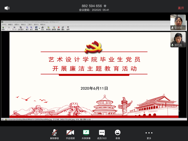 为进一步加强毕业生党员离校前教育,增强廉洁自律意识,艺术设计学院于6月11日组织2020届本硕毕业生党员开展线上廉洁主题教育。