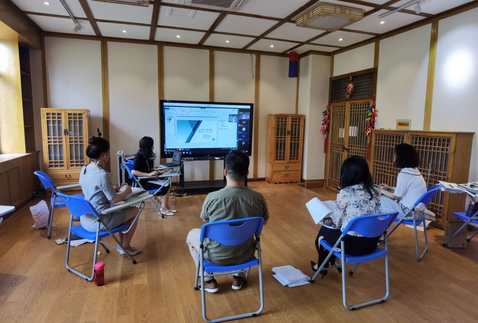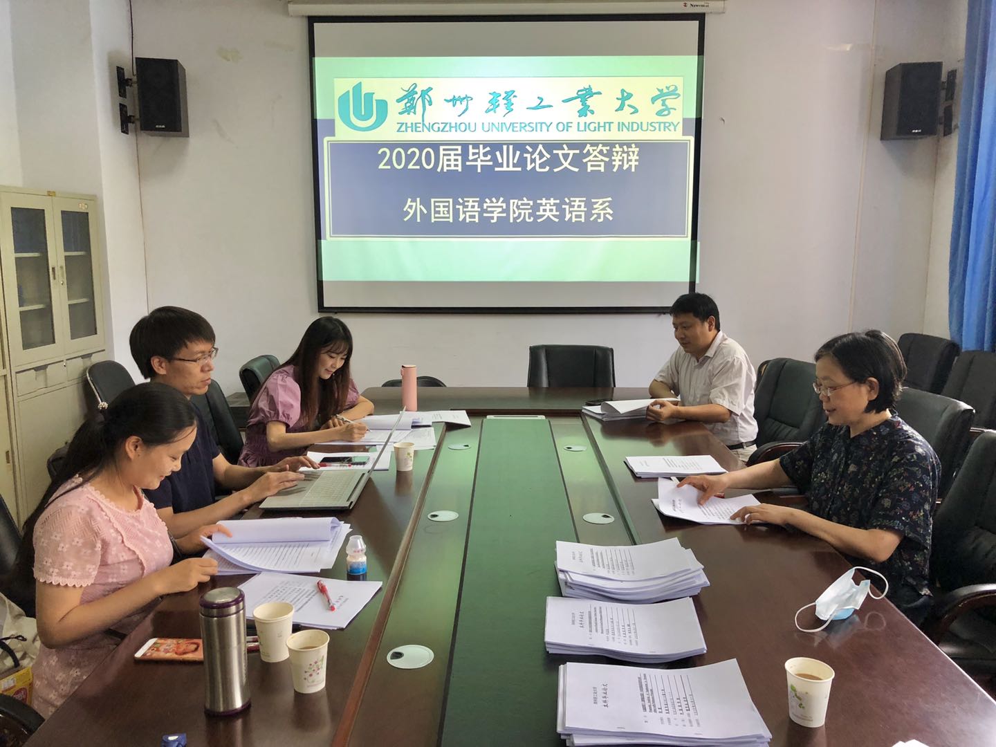 从6月9日到10日,英语专业分为语言学、文学、文化、翻译四个小组,朝鲜语专业和汉语国际教育专业各分为语言学、文学两个小组进行系级答辩。三个专业论文指导老师不辞辛苦准备好学生毕业论文纸质版,并一对一调查学生在线答辩条件和设备是否正常,确保学生顺利参加在线答辩。学院请相关技术人员对所有答辩场地设备进行调试和维护,保证答辩期间网络设备畅通。同时在答辩过程中,学院答辩委员会组长陈文凯、副组长张炎钰走访了各专业答辩现场,抽查学生论文并进行现场指导。系级答辩结束后,6月11日下午学院进行了院级答辩。