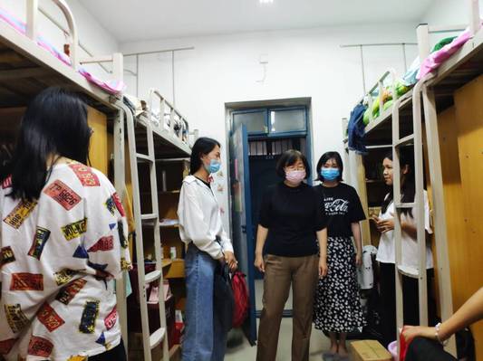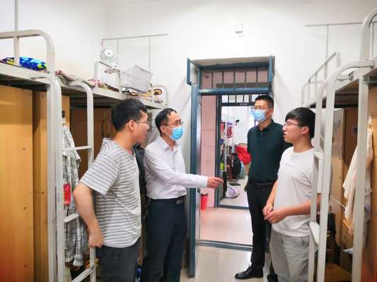 6月18日下午18点,能源与动力工程学院党委书记邵建敏、院长许培援带领辅导员深入学生宿舍走访慰问了返校毕业生。