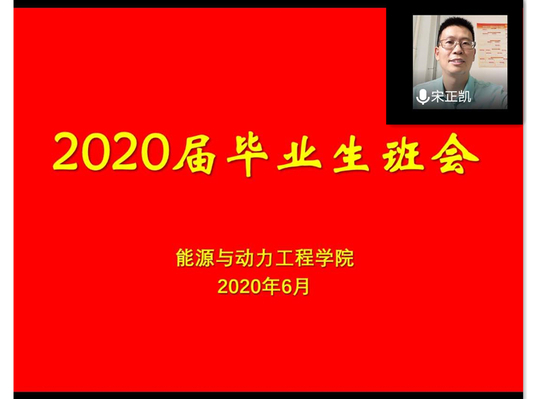 为确保2020届毕业生安全顺利离校,坚持有效推进平安校园、文明校园、和谐校园建设,加强毕业生文明离校教育,规范毕业生管理,能源与动力工程学院于2020年6月17日召开了毕业生“最后一次云班会”,毕业生辅导员宋正凯组织全体毕业生参加了此次班会。