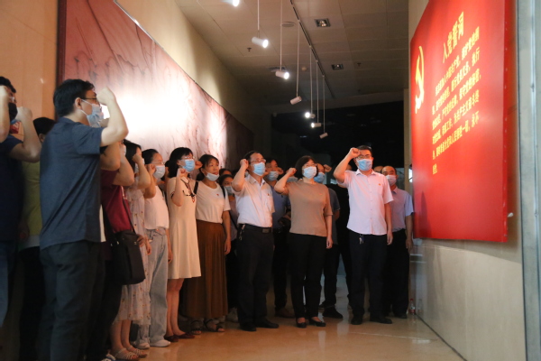 参观活动结束后,全体同志面对党旗重温了入党誓词。