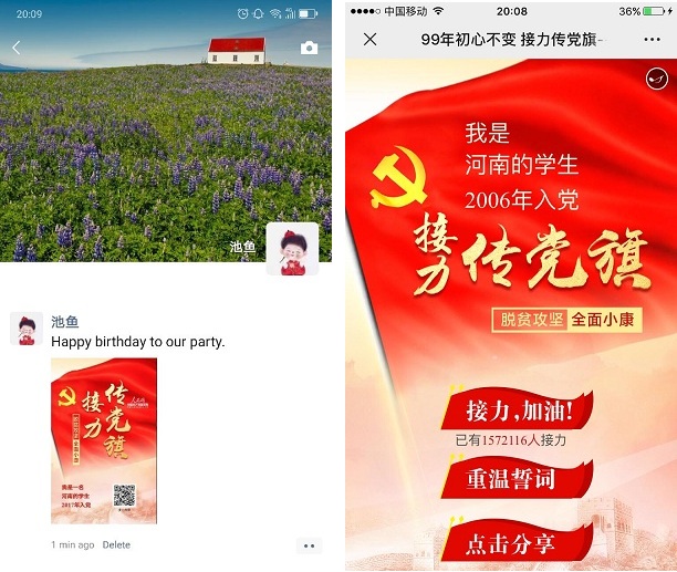 学生一支部书记矫菲以习近平多次提到陈望道翻译《共产党宣言》时“真理的味道有点甜”的故事为开端,讲述了习近平总书记给复旦大学青年师生党员回信的背景及精神内涵,“心有所信,方能远行”为广大青年党员的发展指明了方向,“学思践悟,奋发有为”对广大青年党员提出了殷切期望。部分党员分享了自己手抄的不同语言版本《共产党宣言》,结合自己的学习、生活、实践活动展开热烈讨论。全体党员重温入党誓词,在云端开展接力传党旗活动。