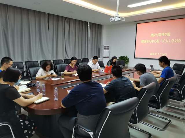 7月10日下午,经济与管理学院在经管楼219会议室召开党委理论学习中心组(扩大)学习会,学院领导班子成员、各科室负责人、各系主任参加会议,会议由学院党委书记张云超主持。