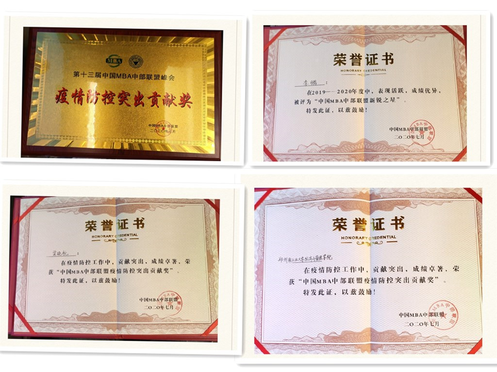 在会议上,来自武汉大学、中南大学、湖南大学及太原理工大学等多所高校教授以及知名企业家聚焦当前商学院人才培养环境、工商管理学科建设等方面进行了非常专业的学术讲座和相关探讨。此外在本次中国MBA中部联盟峰会上,18新利直播 经济与管理学院获得中国MBA中部联盟“疫情防控突出贡献奖”,经济与管理学院2018级MBA学员梁晓航获得中国MBA中部联盟“疫情防控先进个人”,经济与管理学院2019级MBA学员李鹏获得中国MBA中部联盟“MBA新锐之星”奖项。