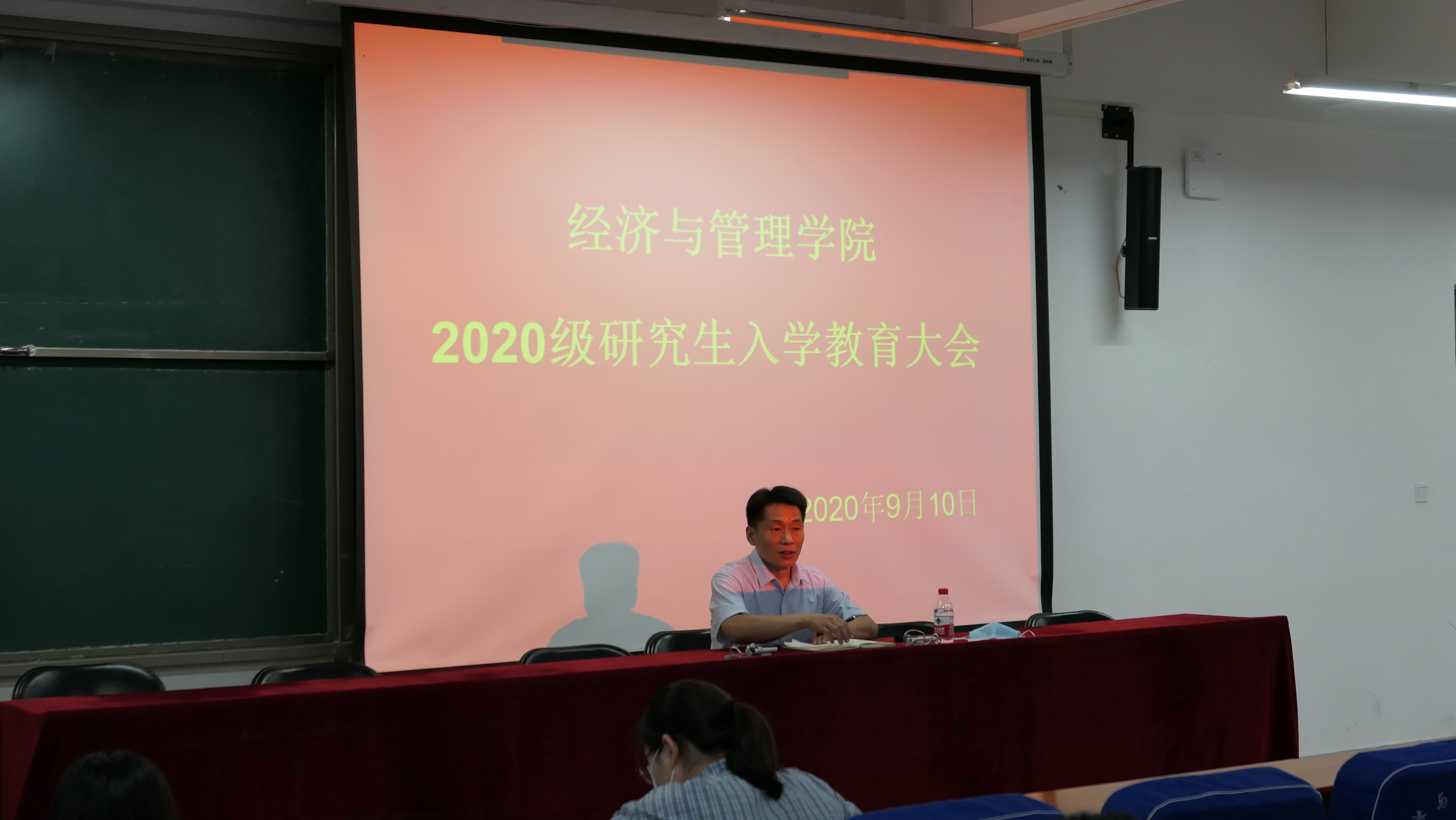2020年9月10日下午,经济与管理学院2020级研究生入学教育大会在经管楼211教室隆重举行学院党委副书记陈章美、副院长张梅出席会议。学院研究生管理办公室、MBA和MPAcc教育中心老师以及2020级全体研究生参加会议。