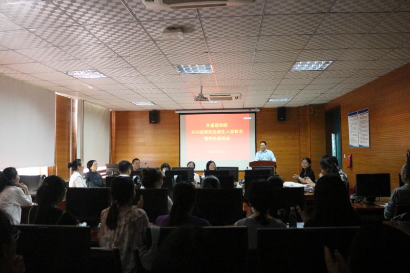 9月10日下午,外国语学院在东二楼301举行2020级研究生入学教育暨师生座谈会。座谈会由外国语学院MTI中心主任赵祥云博士主持,院长陈文凯、副书记马宇、副院长孙艳娜、边铀铀以及硕士生导师、研究生辅导员、研究生教学管理秘书、2020级翻译硕士研究生、2018、2019级研究生代表参加。