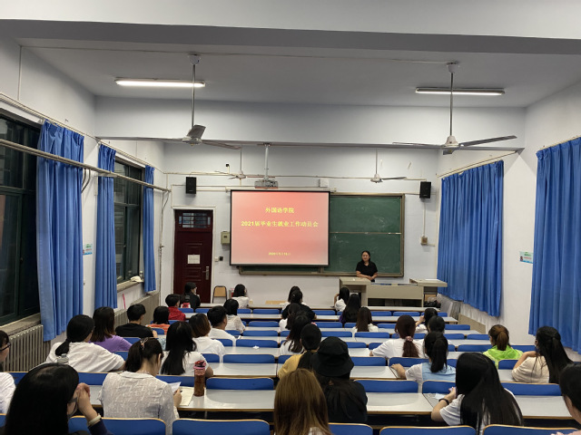 9月16日晚上7点,外国语学院在东二楼100召开2021届毕业生就业动员会,学院党委副书记马宇老师、就业专职辅导员李昱盛老师及2021届全体毕业生参加了会议。