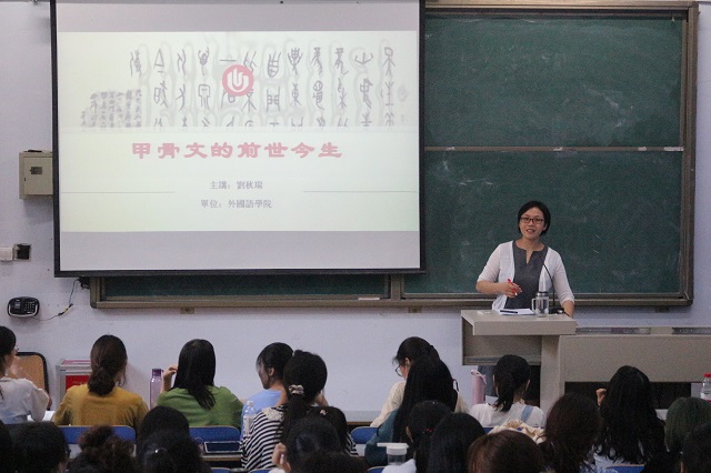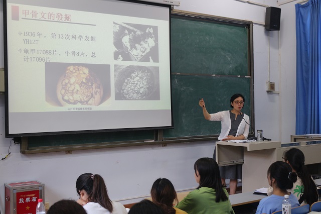 在全国第23届推广普通话宣传周活动之际,为加强高校通用语言文字教育,传承弘扬中华优秀传统文化,9月17日下午,外国语学院汉语国际教育专业刘秋瑞副教授在东风校区东二楼100为外国语学院学生做了一场题为“甲骨文的前世今生”的学术讲座。