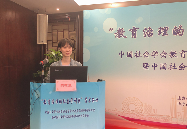 9月25日-27日,由中国社会学会教育社会学专业委员会主办,华南师范大学港澳青少年教育研究中心、东南亚文化教育研究中心等承办的中国社会学教育社会学专业委员会2020年学术年会暨中国社会学会2020年学术年会“教育治理的社会学研究”分论坛在广州举办。政法学院公共事业管理专业2018级1班陈莹慧受邀参加会议,并做了小组发言。