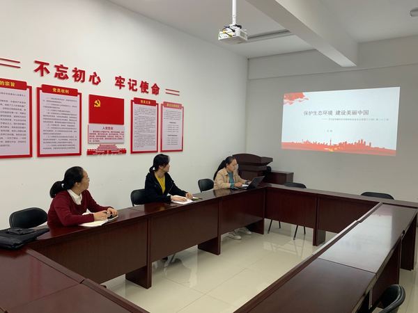 支部党员吴佳以“保护生态环境 建设美丽中国”为题上微党课。她从五个方面详细讲解了如何建设美丽中国:坚持人与自然和谐共生、树立和践行绿水青山就是金山银山理念、推动形成绿色发展方式和生活方式、统筹山水林田湖草系统治理、实行最严格生态环境保护制度。