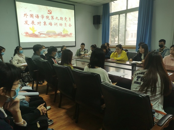 10月13日中午,外国语学院在东二楼306会议室召开第九期党员发展对象培训动员大会,会议由学生第一支部书记矫菲主持,全体党员发展对象参加会议。