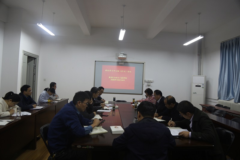 能源与动力工程学院于10月14日下午召开理论学习中心组(扩大)会议,学院班子成员、支部书记及各科室负责人参加了会议,会议由院长许培援主持。