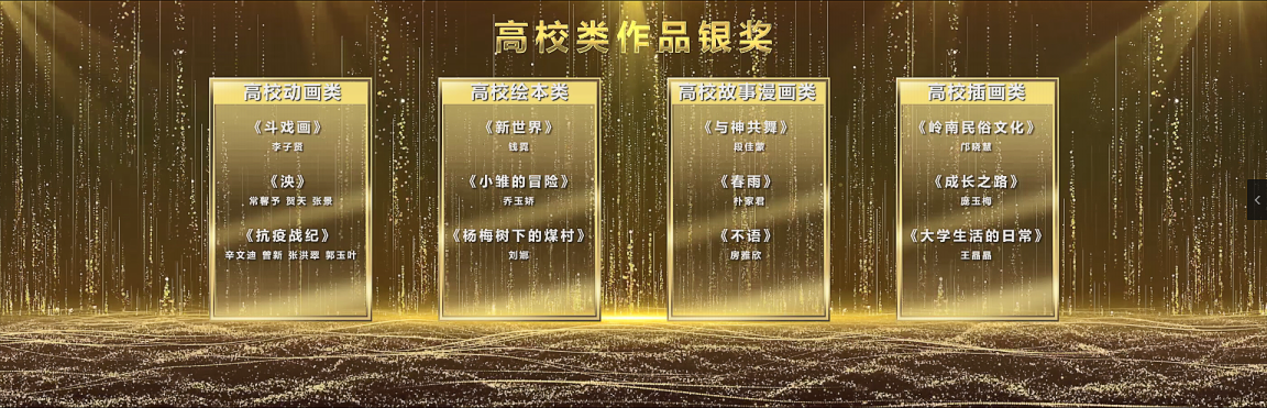 艺术设计学院动画系在本次国际动漫节中喜获国家级二等奖银奖1项,优秀奖5项,共6项。其中,17级动画学生房雅欣的作品《不语》(指导老师:郭笑莹)荣获第二届国际动漫节“金犀奖”原创动漫作品二等奖银奖,在此为获奖的同学和优秀指导老师表示祝贺。