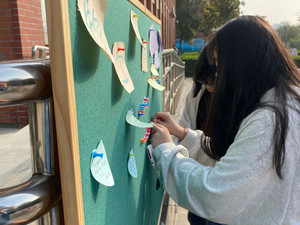 上午9点活动正式开始,同学们带着真挚的祝福纷至沓来,纷纷在便利贴上写下对长辈的思念与祝福,一笔一画间,寄托的是对老人健康长寿的祝福;一颦一笑间,表达的是内心对长辈的感恩之情。时光荏苒,亲情依旧,虽然不能在节日陪伴父母及家中的老人表达孝敬之心,但在学校里,以这种特别的方式表达祝福和感恩,让同学们感受到了家的温暖,活动在同学们的欢声笑语中圆满结束。