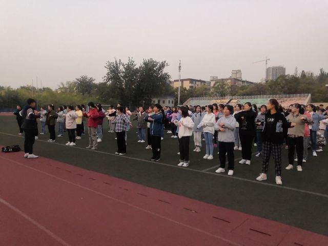 早上6点50,2020级新生150余人准时到操场集合,绕操场晨跑两圈,热身之后,排成队列集体做早操,同学们个个精神抖擞、活力四射,享受运动带来的快乐,达到了预想的效果。
