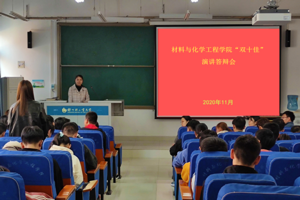 为展现我院学生积极向上的精神面貌和全面发展的综合素质,加强我院学生思想政治教育,发挥先进典型的示范引领作用,2020年11月9日中午,材料与化学工程学院于化工楼218举办“双十佳”演讲答辩会。学院党委副书记司丽娜、各年级辅导员,以及各班级学生代表参会。