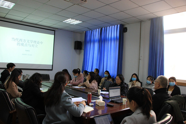 11月19日下午2:30,应我校外国语学院邀请,北京大学程朝翔教授在东二楼306做了题为“当代西方文学理论中的观点与对立”学术报告。报告由外国语学院副院长孙艳娜主持,外国语学院院长陈文凯及部分教师参加了报告会。