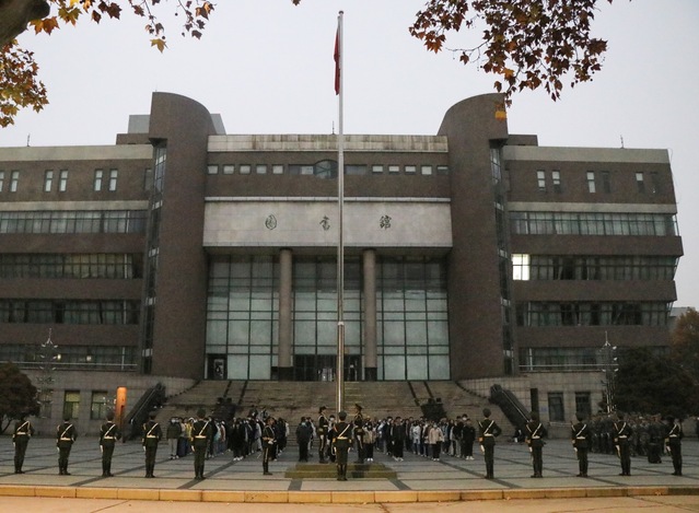 2020年11月23日清晨,艺术设计学院在东风校区图书馆广场举行升旗仪式。学院200余名新生代表参加了此次活动。