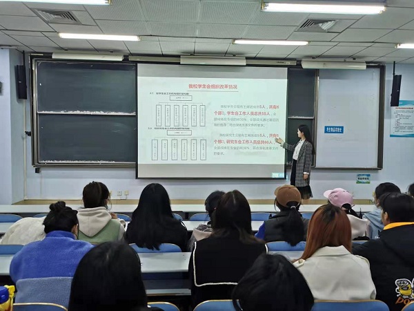 活动中,各团支部负责人带领广大团员学习了校党委副书记张志坚教授的重要讲话精神、我校第十一次学代会选举流程及结果、学生代表大会制度相关知识以及我校学生会组织改革情况。张书记在我校第十一次学代会讲话中要求,团学组织要坚定改革决心,把握发展大局大势。要引领学习成长,助力学生全面发展。要增强政治意识,筑牢青年思想根基。要勇于竞相出彩,服务学校发展大局。