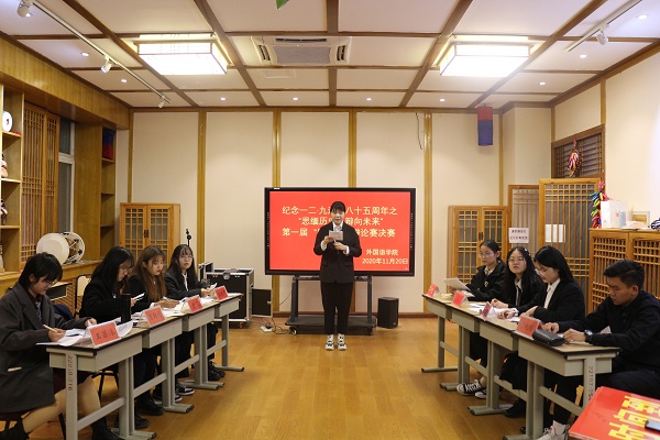 用辩论缅怀历史,以青春展望未来。为纪念一二九运动85周年,弘扬爱国主义精神,培育和践行社会主义核心价值观,11月中旬,外国语学院举办了纪念一二•九运动85周年之思缅历史,辩向未来”辩论赛。此次辩论赛历时两周,分初赛和决赛两个阶段,最终2020级朝鲜语01班代表队摘得桂冠。