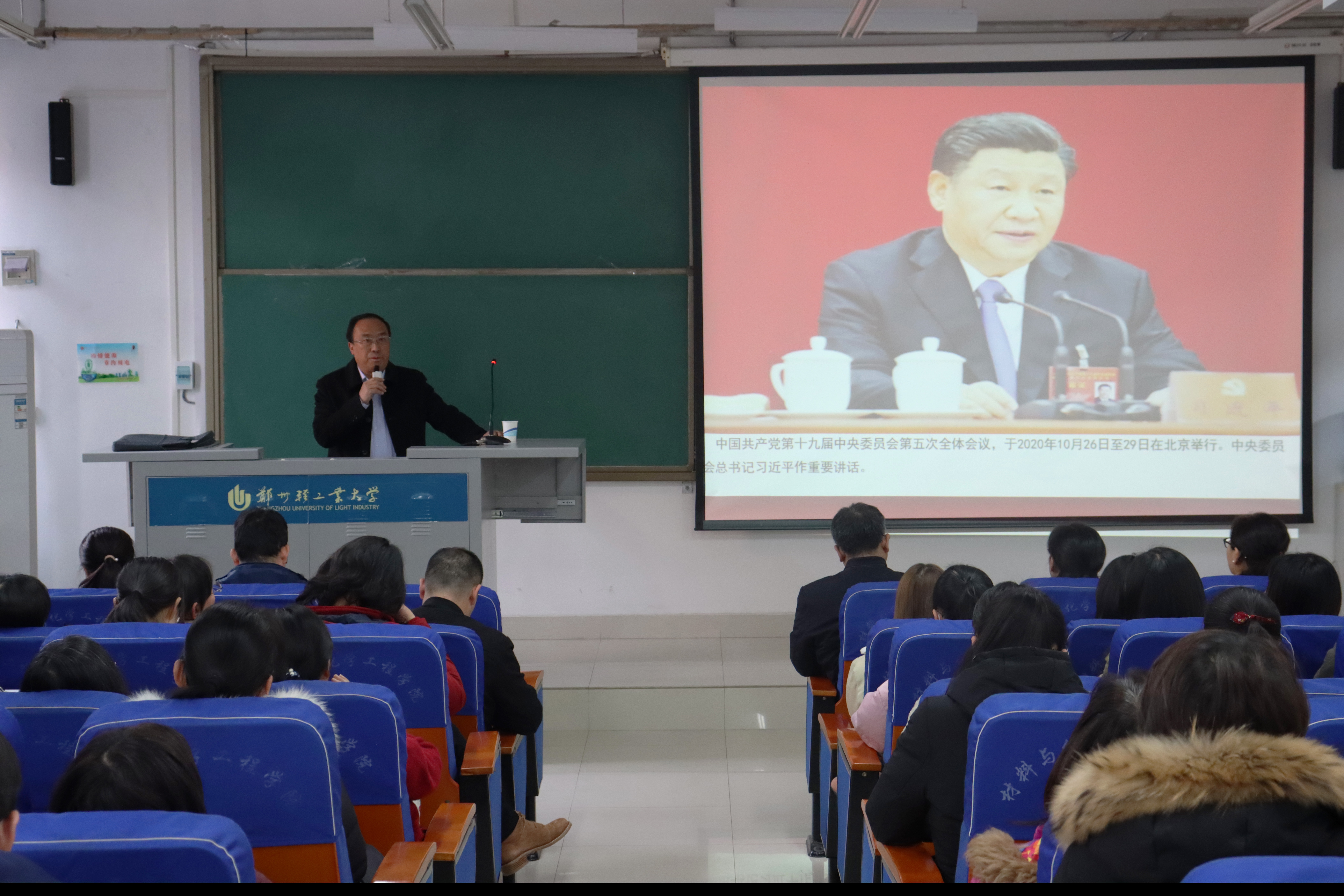 为深入学习贯彻党的十九届五中全会精神,11月26日下午,材料与化学工程学院在化工楼218室举办党的十九届五中全会精神宣讲会。学校党委讲师团和党的十九届五中全会精神宣讲团成员、改革发展研究中心主任李文渊应邀作专题报告。学院全体教师和学生代表近二百余人聆听报告会,学院党委书记常亮主持报告会。