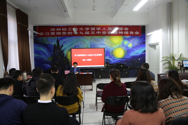 1223日下午,学校留学人员联谊会在双创中心223室举办学习贯彻党的十九届五中全会精神报告会暨交流座谈会,党委统战部负责人、留联会会员及部分留学归国人员代表30余人参加了会议。