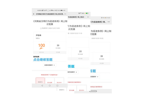 本次知识竞答通过线上答题形式开展,内容围绕社会主义核心价值观、社会公德、职业道德、家庭美德、个人品德等内容设置了选择题、填空题、判断题。开展以来,我院师生积极参与,掀起了一股学习热潮,并在测试中取得优异成绩。同学们纷纷表示,将自觉遵守条例中规定的文明行为,深入践行社会主义核心价值观,提升个人品德,争做文明行为的践行者、文明风尚的传播者。