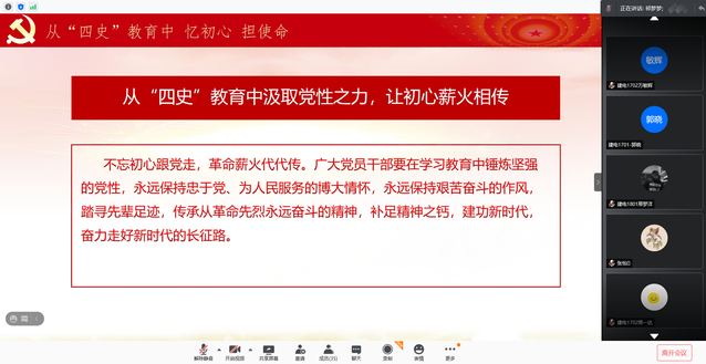 为贯彻习近平总书记关于学习四史的重要讲话和指示精神,进一步巩固不忘初心,牢记使命的教育成果。1231日,建筑环境工程学院学生党支部开展“学‘四史’忆初心担使命”线上主题教育活动。