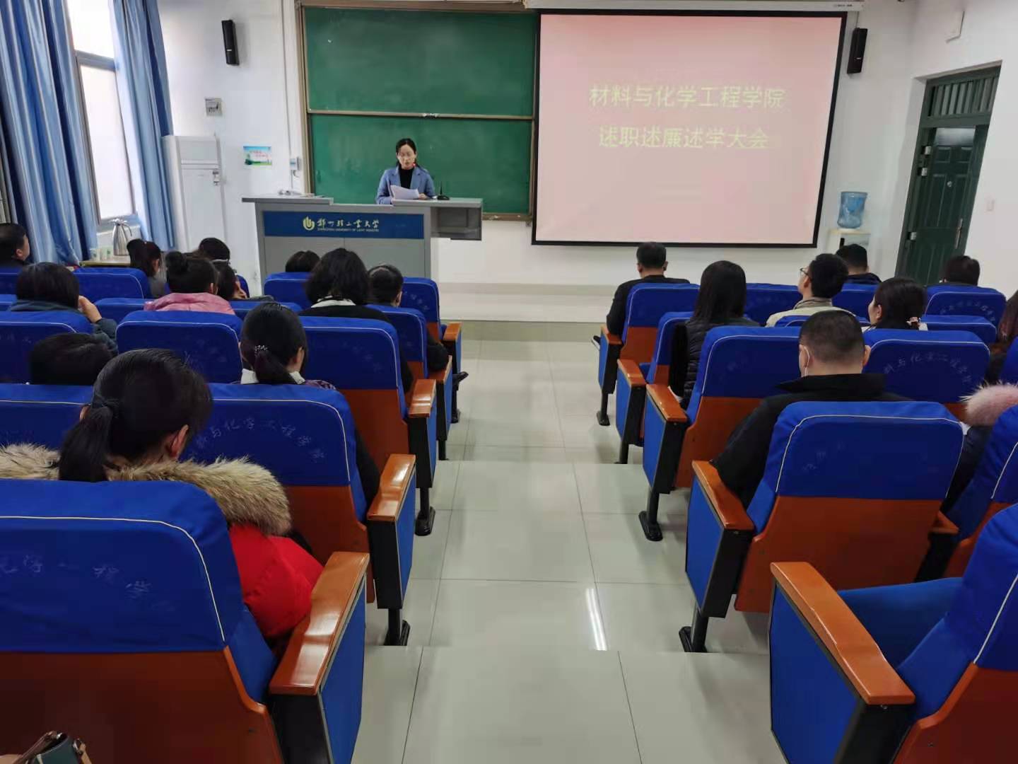 按照学校《中层领导人员2020年度考核工作安排》,12月31日下午,材料与化学工程学院在化工楼218召开处级领导干部述职述廉述学大会。校纪委纪检监察一室主任崔建平到会组织开展对学院领导班子及成员的民主测评工作,学院全体教职工参加会议。会议由学院党委书记常亮主持。