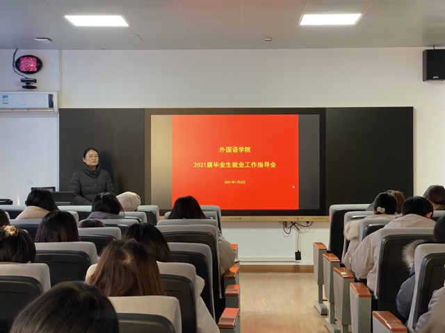 1月5日下午3点,外国语学院在东二楼209召开2021届毕业生就业指导会,学院党委副书记马宇老师、就业专职辅导员李昱盛老师及2021届全体毕业生参加了会议。