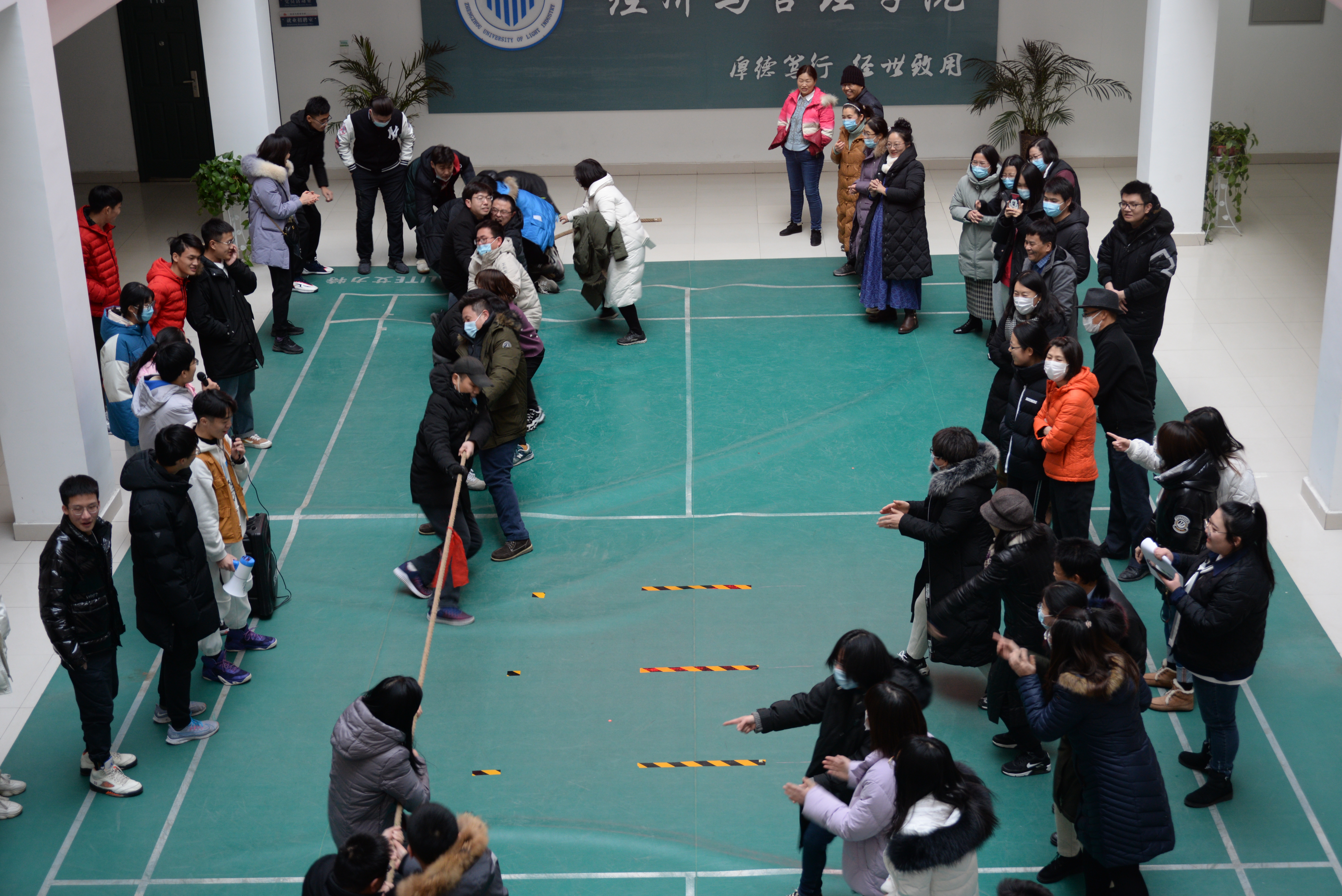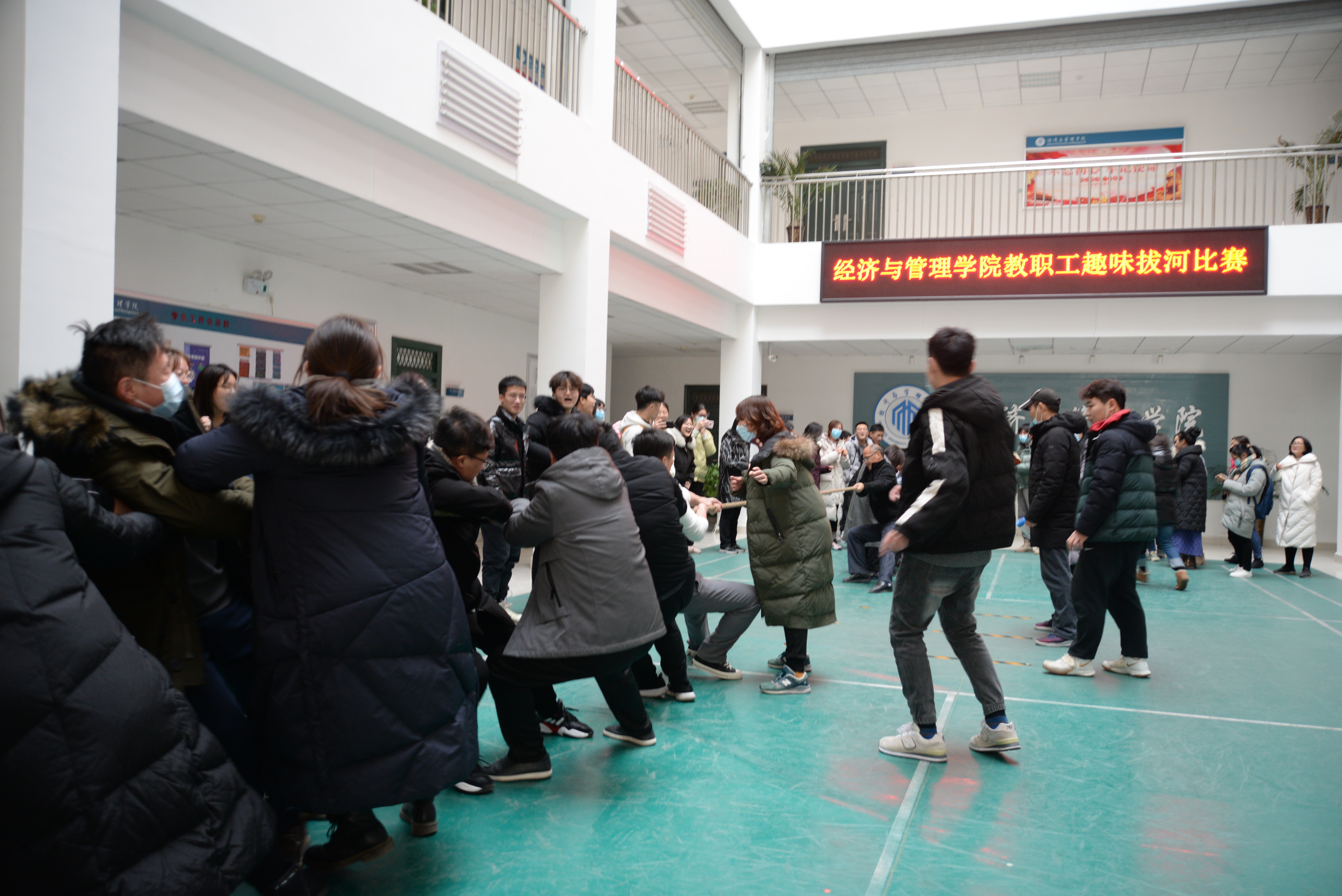 为丰富教职工文化生活,引导教职工积极参加体育锻炼,培养团队合作精神和拼搏精神,营造更加和谐、融洽的工作氛围,1月14日下午,经济与管理学院工会在经管楼南门大厅举办教职工趣味拔河活动。学院全体教职工参加了本次趣味拔河活动。