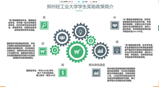 栗老师首先从整体上介绍了国家、河南省资助政策和我校资助工作目标、机制及措施,详细介绍了我校已建立的“奖、贷、助、补、减”和“新生绿色通道”六位一体的资助体系和机制。接着,栗老师着重说明了疫情期间因遭受突发情况而导致家庭经济困难学生申请临时困补的方法,帮助同学们坚定信心,共同解决问题。最后,栗老师就生源地、校园地助学贷款的申请方式和流程进行了说明,提醒全体学生通过正规途径申请助学贷款,不要盲目相信所谓的学生贷、校园贷,提高安全意识,树立正确的消费观。