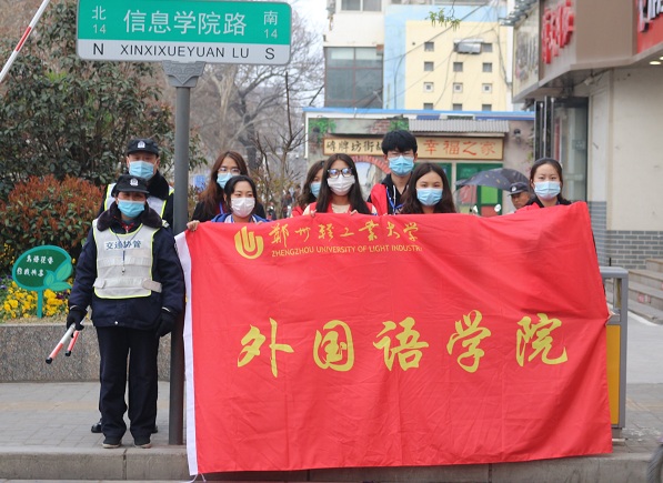 为进一步提高青年思想道德素质,弘扬志愿精神,优化交通秩序,倡导文明交通,近期,外国语学院“译心传承”志愿服务队在学校周边进行了文明交通志愿服务活动。