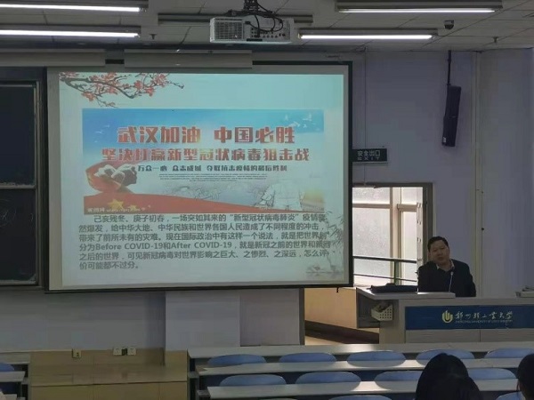 3月16日,学院党委书记王伟以《弘扬伟大抗疫精神 涵养家国情怀》为题,为2020级英语专业1、2、3班学生作专题辅导报告。他以大量的事实、翔实的数据,对比讲解中美抗击疫情的巨大差距,深刻揭示了中国共产党是风雨来袭时中国人民最可靠的主心骨,我国社会主义制度是抵御风险挑战的最有力制度保证。