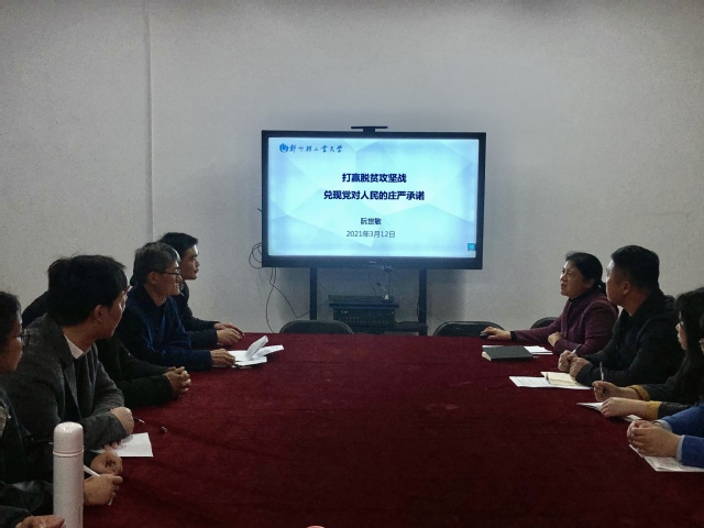为迎接中国共产党百年华诞,教育引导教职工坚持“立德树人”、强化使命担当,3月12日下午,工程训练中心党总支书记阮世敏以“打赢脱贫攻坚战 兑现党对人民的庄严承诺”为题,在禹州基地1号实训楼107室为工程训练中心禹州基地教职工讲授思政课。