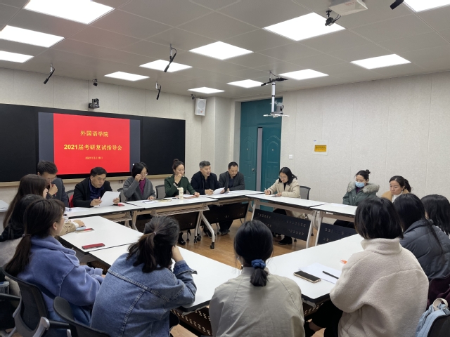 3月18日13:30,外国语学院在东二楼205举办了2021届考研学生复试指导会。外国语学院院长陈文凯、党委副书记马宇、各系主任、青年博士教师代表、辅导员以及过线的同学参加了指导会。