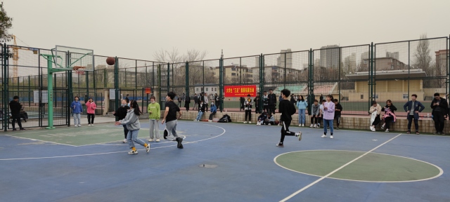 下午1500,在做完热身运动后,比赛正式开始,首先进行的项目是趣味篮球赛,以班级为单位,男女混合组队的方式进行比拼。随着裁判哨声的响起,篮球被同学们带着在场上不断穿梭,一次次的进球,一声声的喝彩,让比赛变得异常激烈。接下来的项目是纸飞机大赛,同学们在现场制作以后在同一起点线飞出自己的纸飞机,距离最远者获胜,一个个纸飞机带着同学们的希望在空中滑过。现场气氛活跃,同学们在春风中做着游戏,感受着走出宿舍、走向操场的快乐。