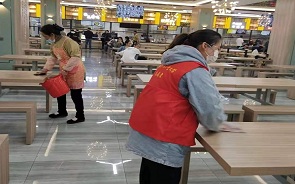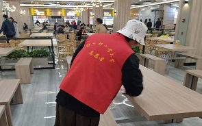活动期间,志愿者对学生们就餐时插队,坐姿不雅,饭后不收拾餐具等不文明行为进行了规劝,并帮助餐厅工作人员打扫地面上的饭屑与垃圾。活动过程中,志愿者们分工合作,积极主动地去引导大家文明就餐,通过自身的行动为打造良好、和谐、温馨的就餐环境贡献了自己的力量,同时也深刻体会到了餐厅服务人员工作的艰辛。