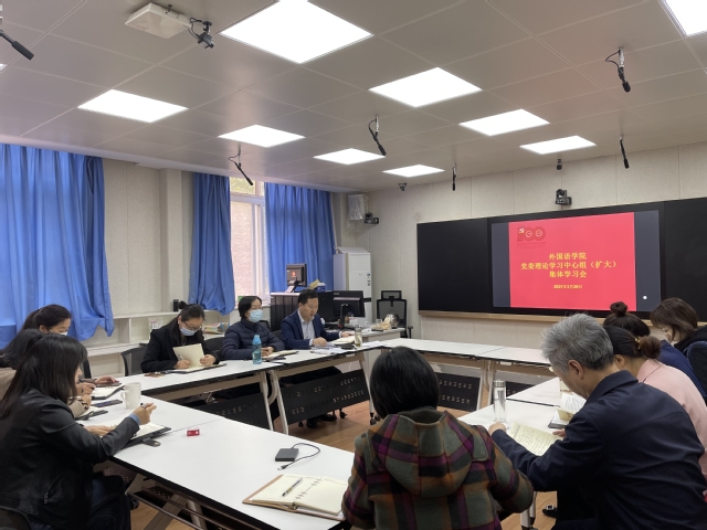 3月29日,外国语学院党委理论学习中心组(扩大)集体学习会在东二楼205召开,学院党委理论学习中心组成员、各支部书记参加会议。