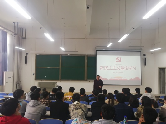 会上,党支部书记宋正凯传达了学校党史学习教育实施方案要求,阐述了党史学习教育的重要意义,安排部署了本科生党支部党史学习教育活动。学生党员亢思萌与大家一同学习《中国共产党简史》之新民主主义革命篇,重点学习了新民主主义革命胜利的原因以及胜利的经验。学生党员吴天行带领大家学习了新民主主义革命的四个历史阶段,让大家更清楚的了解了新民主主义革命的发展历程。集中学习结束后,参会人员围绕新民主主义革命的开始、新民主主义革命的历史意义等问题进行了讨论。最后,党委副书记李俊丰对本次党史学习教育活动进行了总结,强调共产党员只有在不断学习党史的前提下才能保持鲜明的党性,才能不断提高自己的思想觉悟,才能不忘初心,努力奋进。