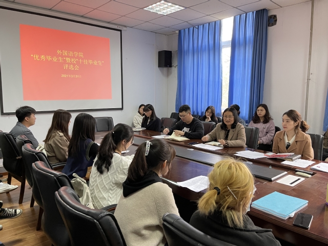 3月30日,外国语学院在东二楼306举办2021届优秀毕业生、十佳毕业生评选活动,学院党委副书记马宇、全体辅导员及学生代表参与本次活动。