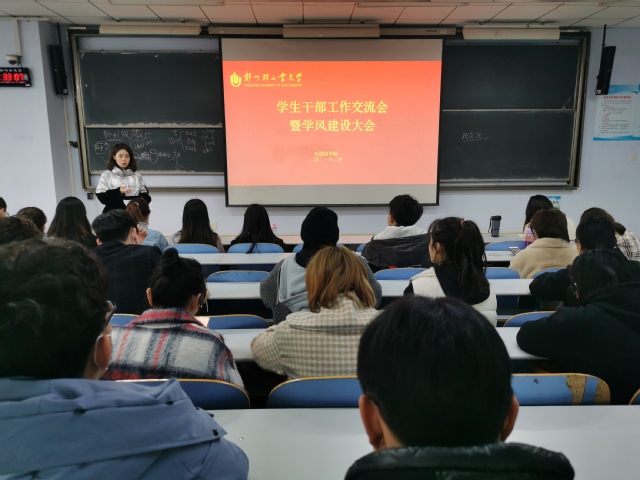 为进一步加强班级学风建设,增强同学们学习的积极性与主动性,2020年4月2日,外国语学院在教三楼104召开“正学风聚能量”学风建设大会暨学生干部交流会。学院学工办张文卿老师及全体学生干部参加了此次会议。