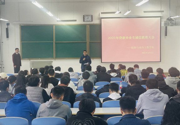 为帮助贷款毕业生了解还款流程和注意事项,增强诚信还款意识和社会责任感,4月7日中午,能源与动力工程学院在工程楼109召开了2021届贷款毕业生诚信教育大会。学院党委副书记李俊丰、学工办主任宋正凯和全体2021届贷款毕业生参加了此次会议。