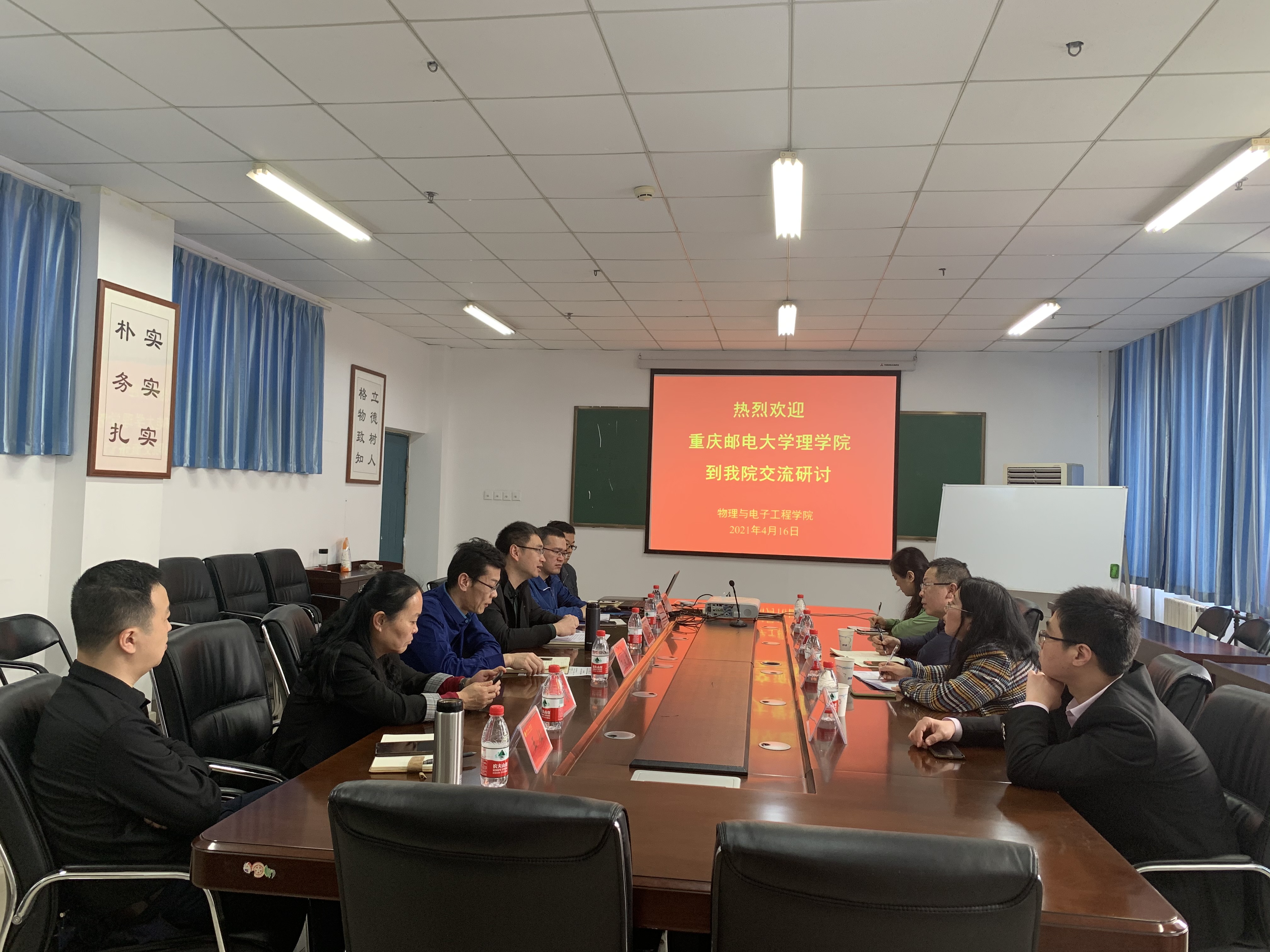 4月16日上午,重庆邮电大学理学院院长周平教授一行4人到物理与电子工程学院进行调研交流。座谈会在四教楼510学术讨论室举行,学院院长杨坤、副院长王永强、以及骨干教师代表参加了座谈会。