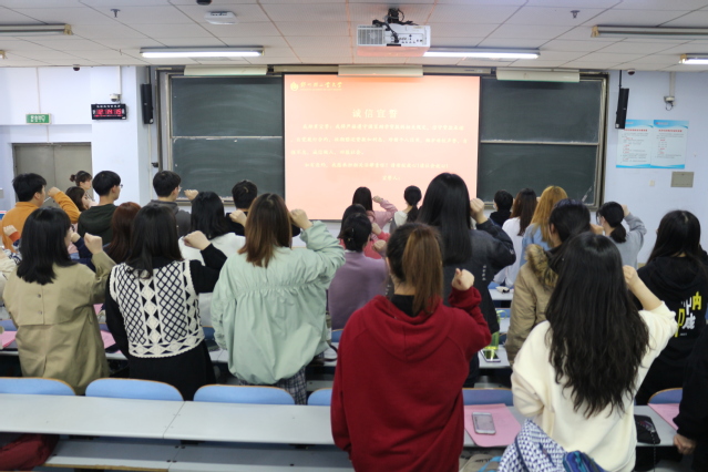 会上,张老师首先向贷款毕业生强调诚实守信是中华民族的传统美德,希望受助同学感恩助学政策,做到诚信还款、诚信做人,以高度的责任感回报社会和国家,争做新时代有责任有担当的新青年,让诚实守信的传统美德在学校发扬光大。随后,从贷款的相关政策、还款方式及流程、支付宝还款等方面详细介绍了高校助学贷款还款的相关知识。最后,全体贷款学生进行了助学贷款诚信宣誓。