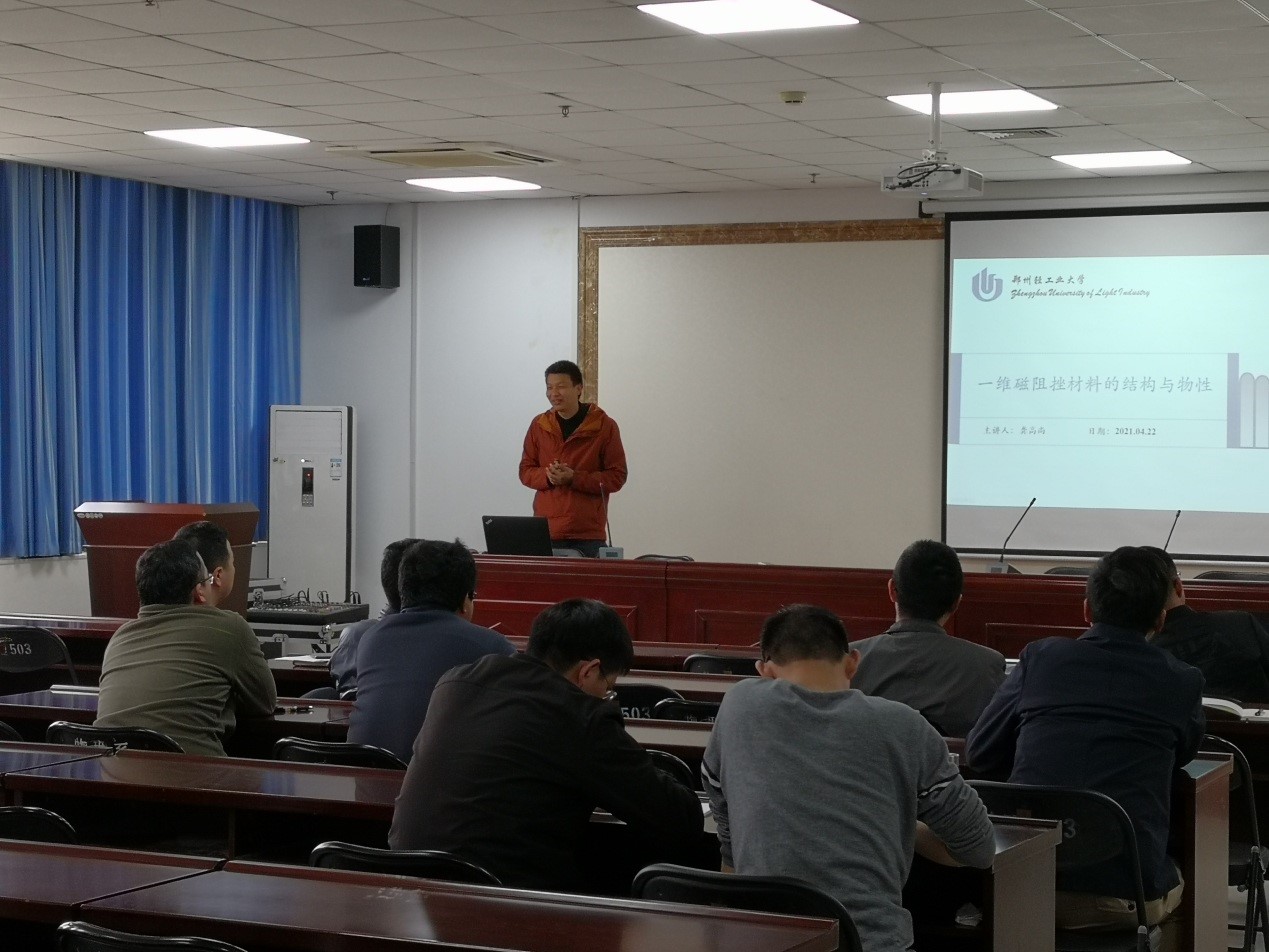 4月22日下午,物理与电子工程学院王海燕博士和龚高尚博士在科学校区四教楼503会议室分别做了题为“应力对二维钙钛矿材料性能的影响”和“一维磁阻挫材料的结构与物性”的学术报告,我院相关专业老师和研究生参加了此次报告。