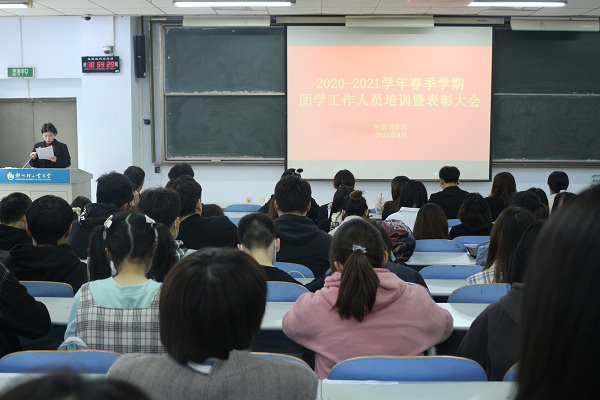 为进一步加强我院团学组织队伍建设,提高学生干部素质能力,加强作风建设,4月25日,外国语学院在教三楼104召开团学干部培训班启动仪式暨表彰大会。外国语学院党委副书记马宇及全体团学干部参加大会,大会由团委书记矫菲主持。